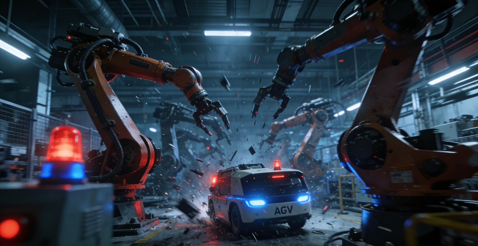 焊接机器人无视安全距离,机械臂越界摆动;搬运机器人强行变道,与AGV小车迎头对冲;巡检机器人发出刺耳警报,却无法传递任何故障信息。金属摩擦的尖啸、失控的机械轰鸣、闪烁的红灯充斥整个车间,一场机毁人亡的重大事故,只差三秒就要发生。