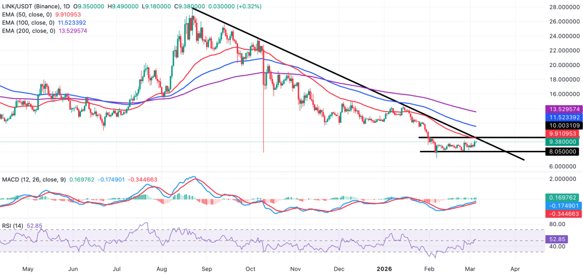 Chainlink (LINK) sta oscillando attorno al livello di 9,38 USD al momento della scrittura di questo articolo venerdì, mentre il mercato delle criptovalute continua a subire l'impatto delle tensioni geopolitiche in Medio Oriente. L'aumento degli attacchi da parte degli Stati Uniti e di Israele contro l'Iran ha generato una certa cautela nei mercati finanziari globali, rendendo gli investitori crypto più cauti nelle loro decisioni di trading.