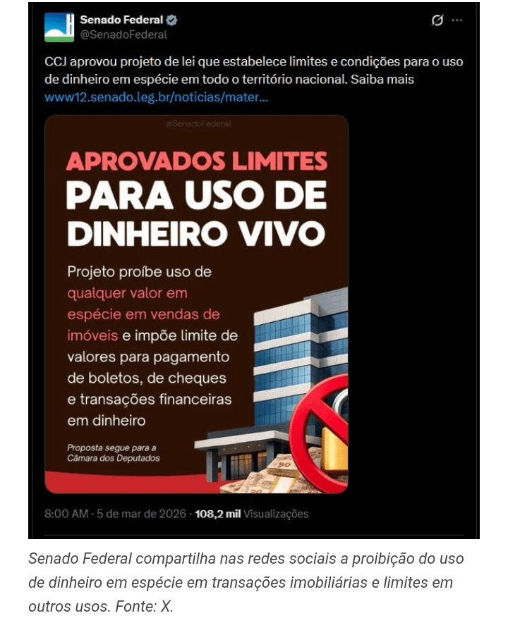 Oggigiorno, qualsiasi brasiliano può pagare ciò che desidera in contante, anche immobili e servizi costosi. Ci sono alcune regole di comunicazione per agenzie immobiliari, gioiellerie e altre aziende.