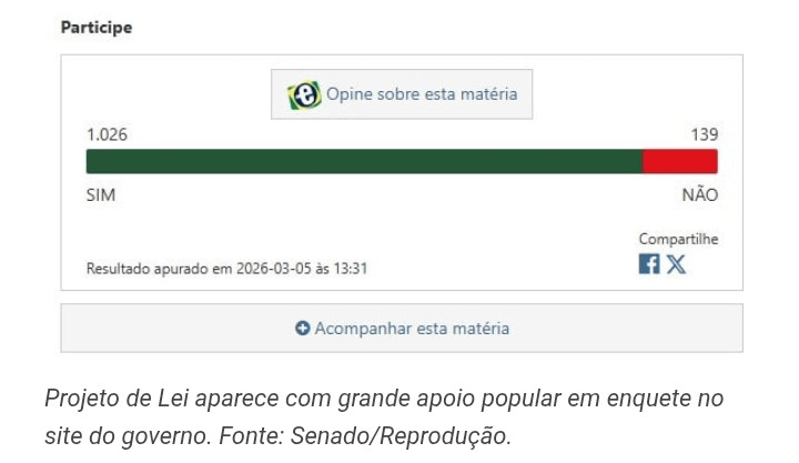 Sul sito del Senato, c'è stata un'inchiesta: il popolo ha votato 1.026 a favore e 139 contro il progetto. Tuttavia, sui social, molte persone si sono arrabbiate e hanno protestato, dimostrando che l'opinione è ben divisa.