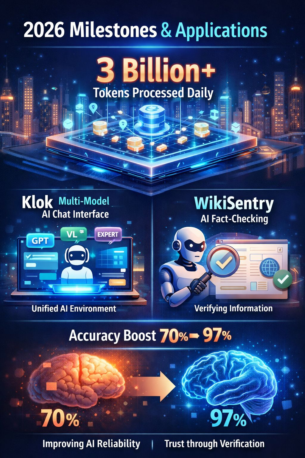 Internal testing has also demonstrated major improvements in AI reliability. In some cases, the verification layer has helped increase output accuracy from approximately 70% to nearly 97%, showing how decentralized verification can dramatically improve AI trustworthiness.