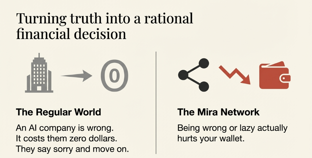 I love this because it turns "truth" into a rational financial decision. In the regular world, an AI company can be wrong and it costs them zero dollars. They just say sorry and move on. In this network, being wrong or being lazy actually hurts your wallet.