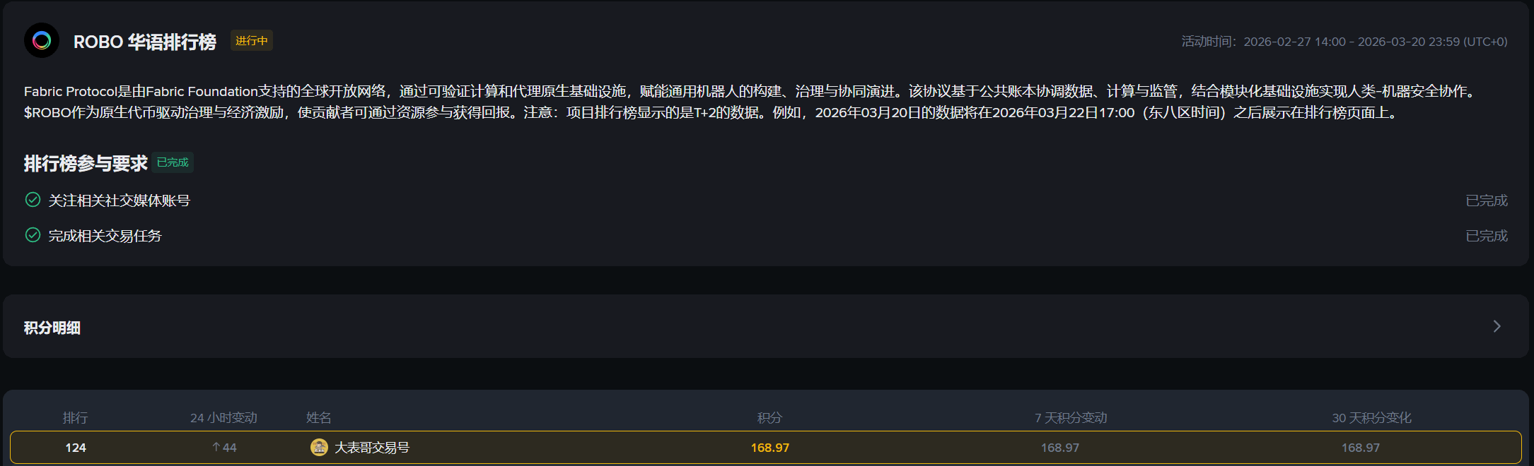 是 Fabric Protocol的原生实用和治理代币,总供应量固定为 100亿枚(10,000,000,000 ROBO),旨在为去中心化机器人经济提供激励、费用支付、质押和治理功能。