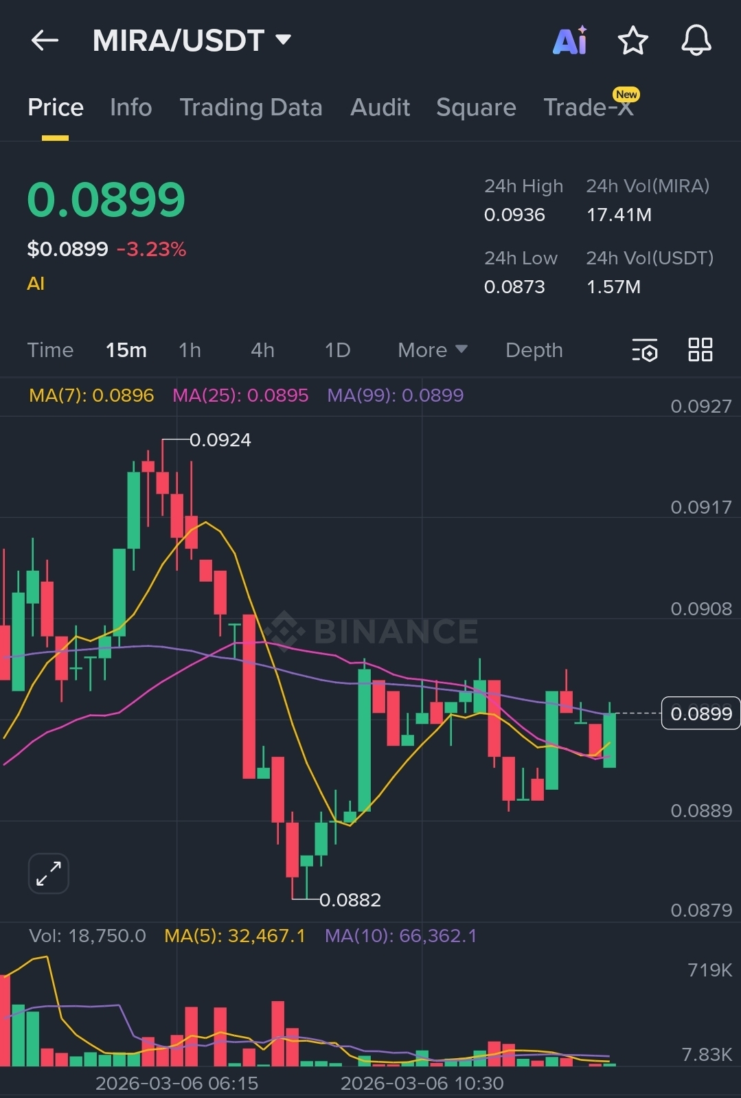 Technical analysis of MIRA focuses on studying price charts, indicators, and trading momentum to estimate possible future price movements. As of recent market data, MIRA is trading around $0.08–$0.09, showing relatively low momentum after a period of volatility typical for small-cap cryptocurrencies.