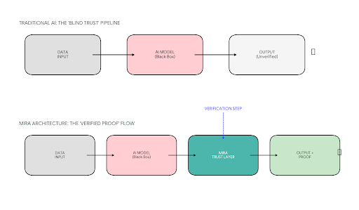 Instead of blindly accepting an AI-generated answer, the system adds an additional step where the output can be validated. That means applications don’t just receive a response from a model. They receive something much more powerful: an output accompanied by proof that the result has been verified.