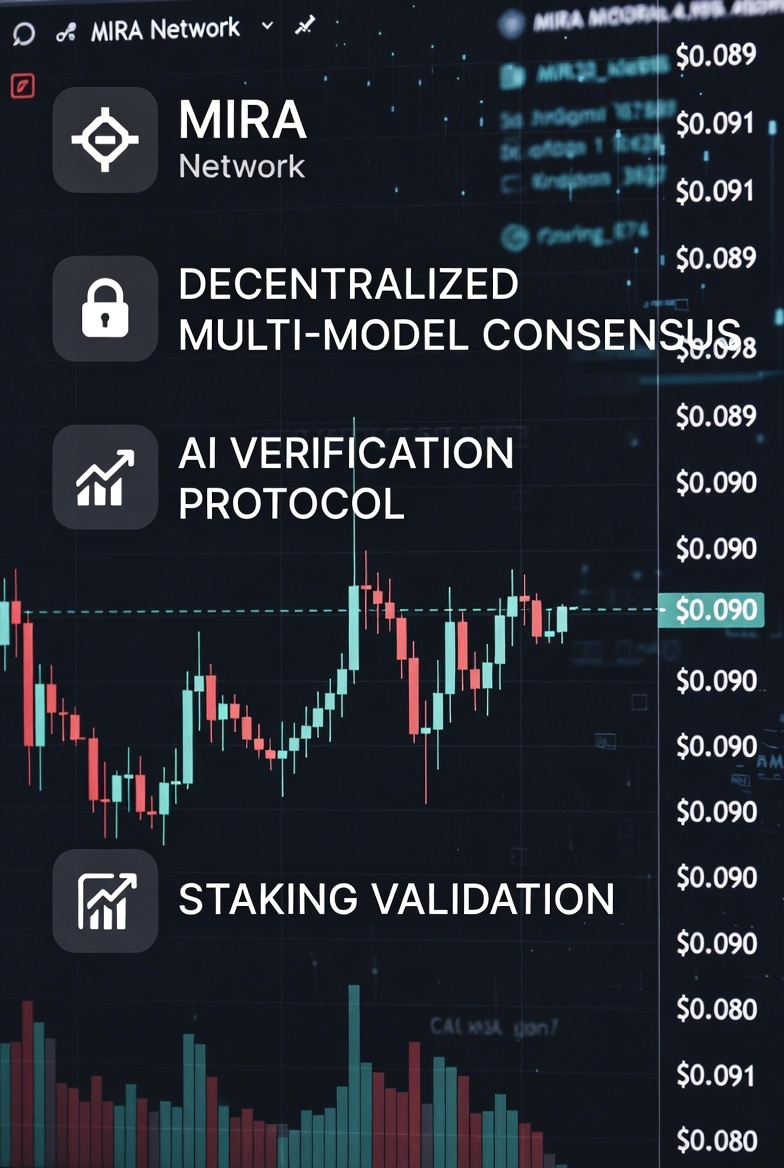 Mira Network $MIRA A is currently consolidating at $0.089–$0.091 (MC ~$22M) after the post-Binance listing correction from $2.61 ATH. This dip is healthy profit-taking — 24h volume still solid at $11–12M and the 1B fixed supply tokenomics are working perfectly. As the only decentralized AI verification protocol using multi-model consensus + staking validation, $MIRA eliminates hallucinations for enterprise LLMs, DeFi oracles, and on-chain AI agents. Recent mainnet upgrades and partnerships with leading AI infra projects are already boosting TVL and validator count — real utility driving real demand.