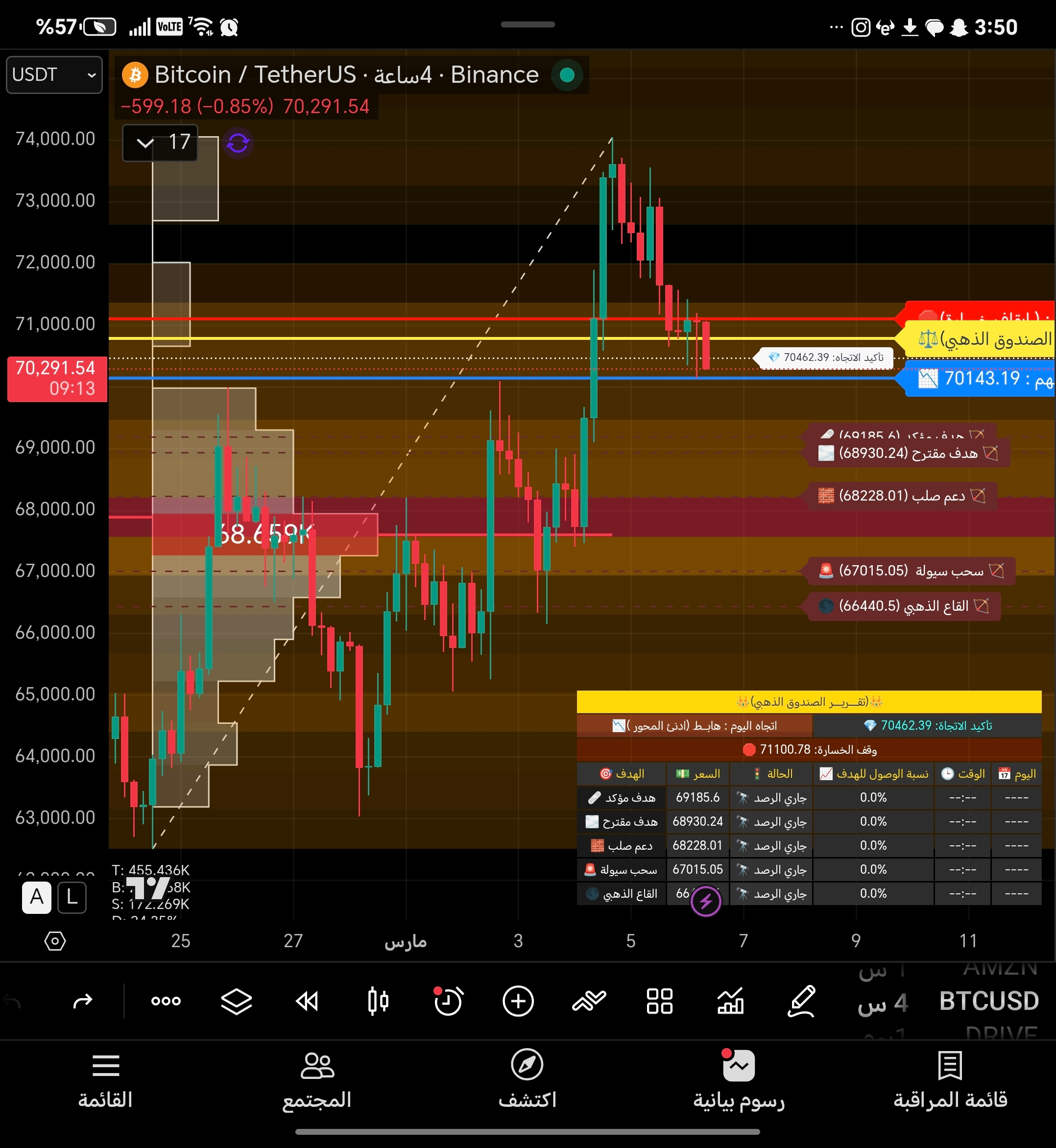 La mia opinione in breve: aspettare ora è più intelligente che entrare. Lascia che il prezzo stabilisca una rottura di $71,200 prima, poi prendi la tua decisione.
