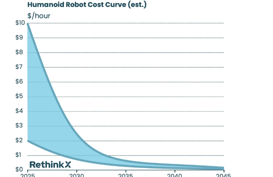 (图:人形机器人成本曲线,从高价位快速降本,经济门槛在降低。这让我看好产业爆发潜力。)