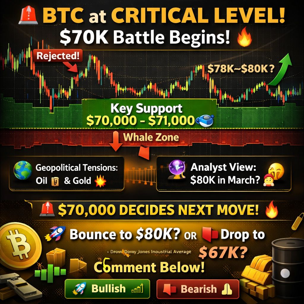 🚨 $BTC BTC at a Critical Level – $70K Battle Begins