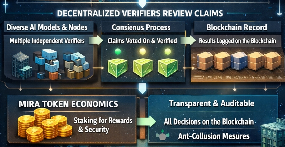 Mira Network calls itself a decentralized trust layer for AI, and that description carries deep meaning. Instead of relying on a single AI model to decide what’s true, Mira breaks down AI responses into smaller pieces called claims. Each of these claims is independently verified by a network of nodes running multiple different models. When most of these verifiers agree a claim is true, that claim is recorded on the network as verified knowledge. This process creates a publicly auditable trail of decisions, built directly into Mira’s internal mechanics and powered by a blockchain ledger that can’t be tampered with after the fact. Real verifiable truth becomes more than an idea; it becomes a stored fact that any application can reference.