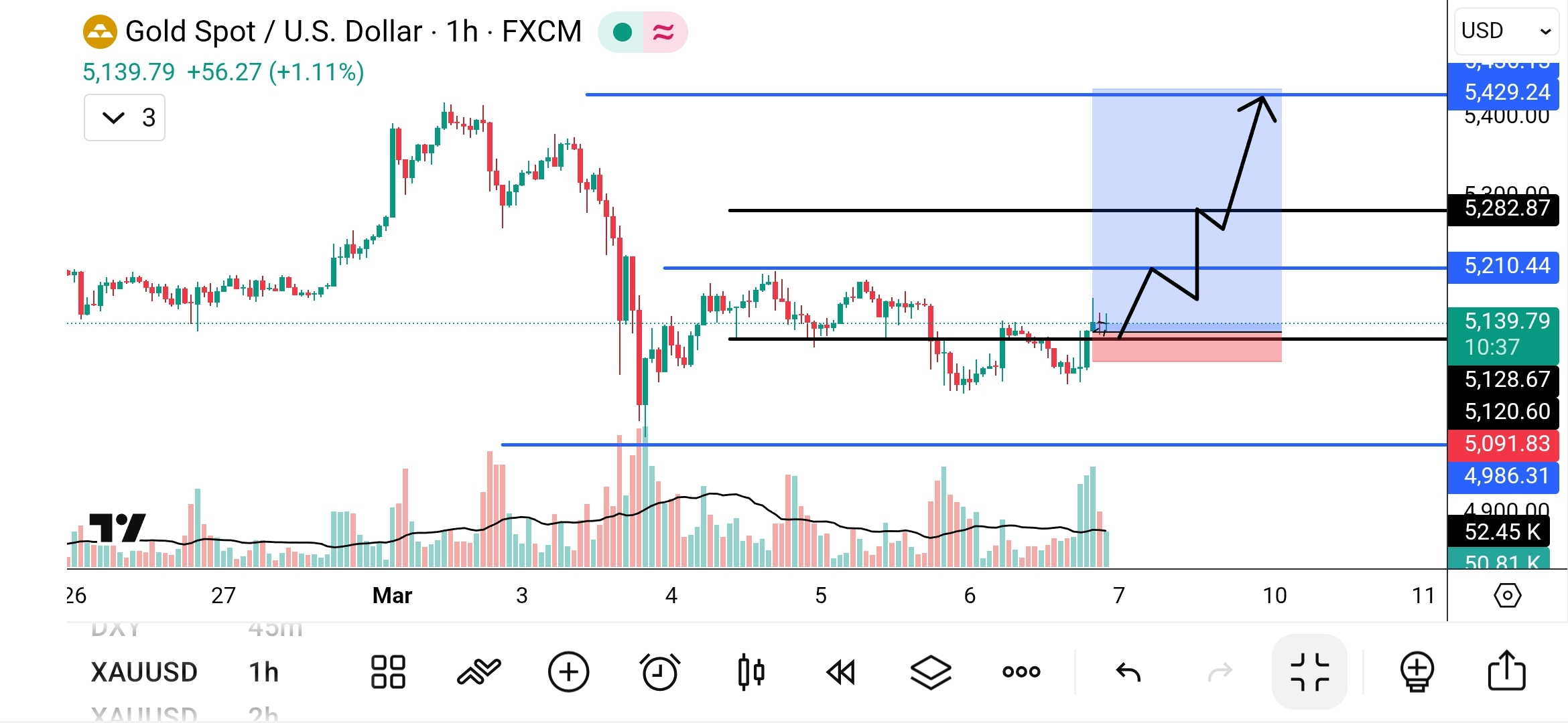 Recently, price created multiple higher lows around 5130, showing that buyers are defending this zone. This support area is now acting as a launchpad for the next bullish wave.