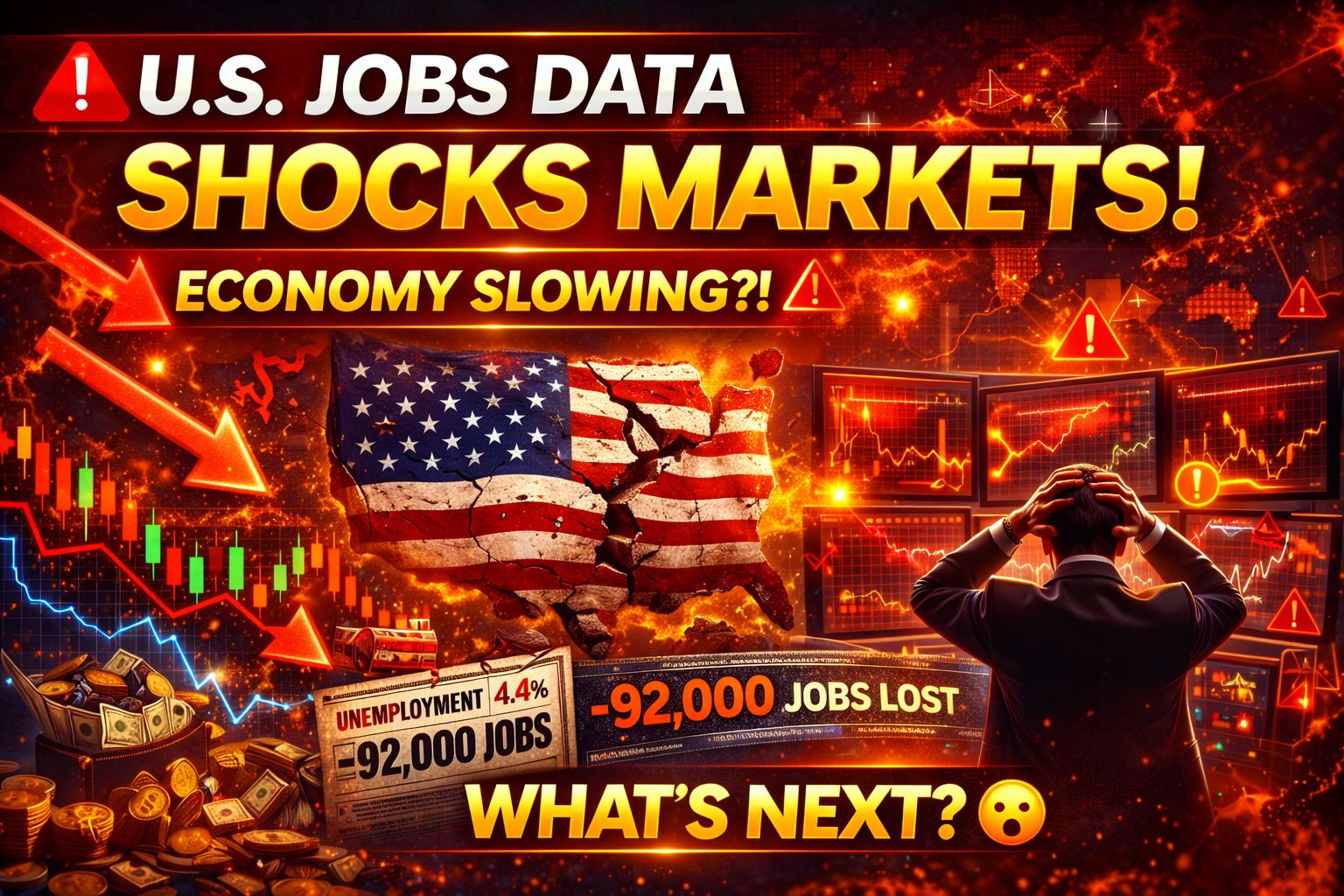 📊 Nonfarm Payrolls: –92,000 jobs (expected +58,000)