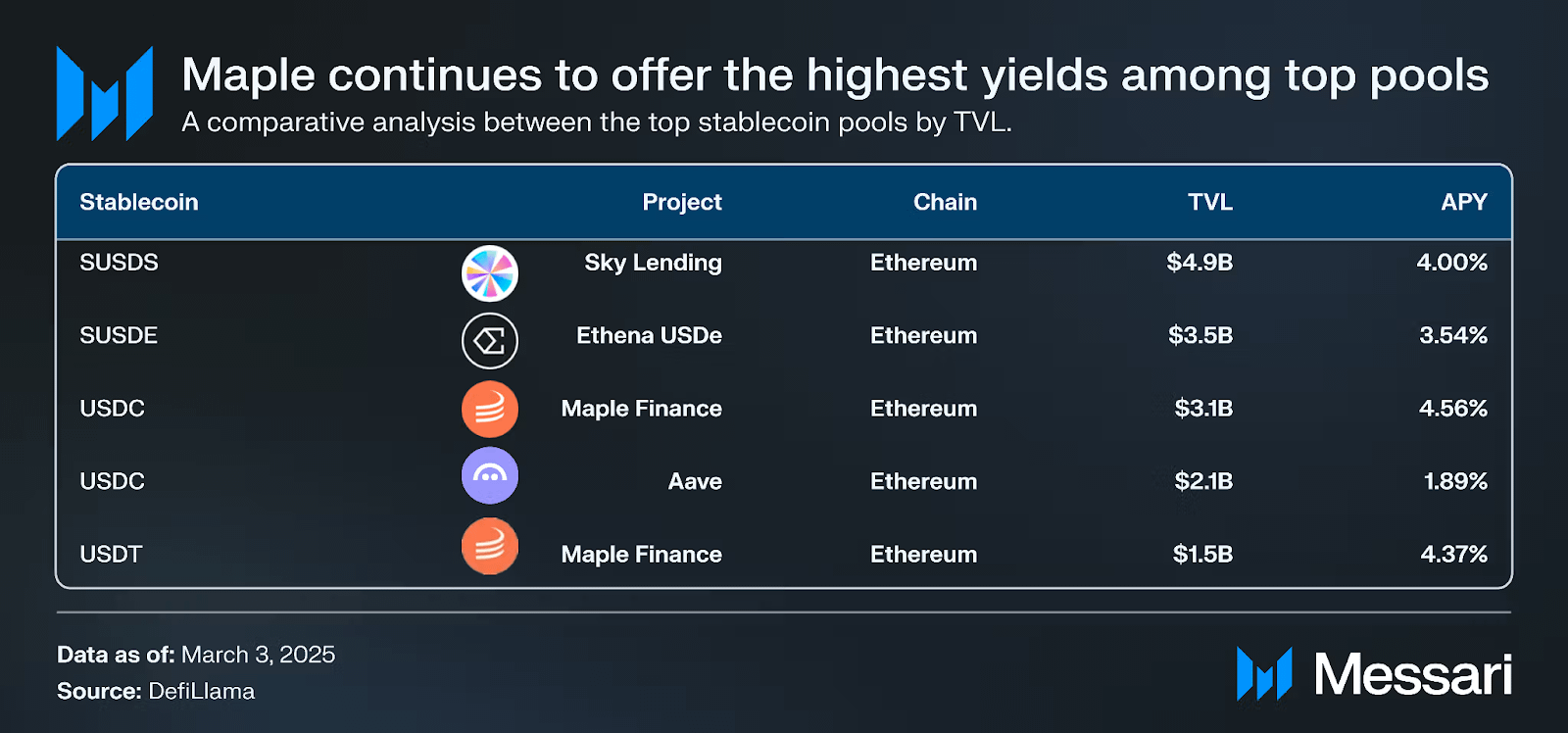 Top stablecoin per percentuale di rendimento. Fonte: Messari