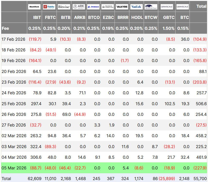 Flussi ETF Bitcoin, in milioni di USD. Fonte: Farside Investors