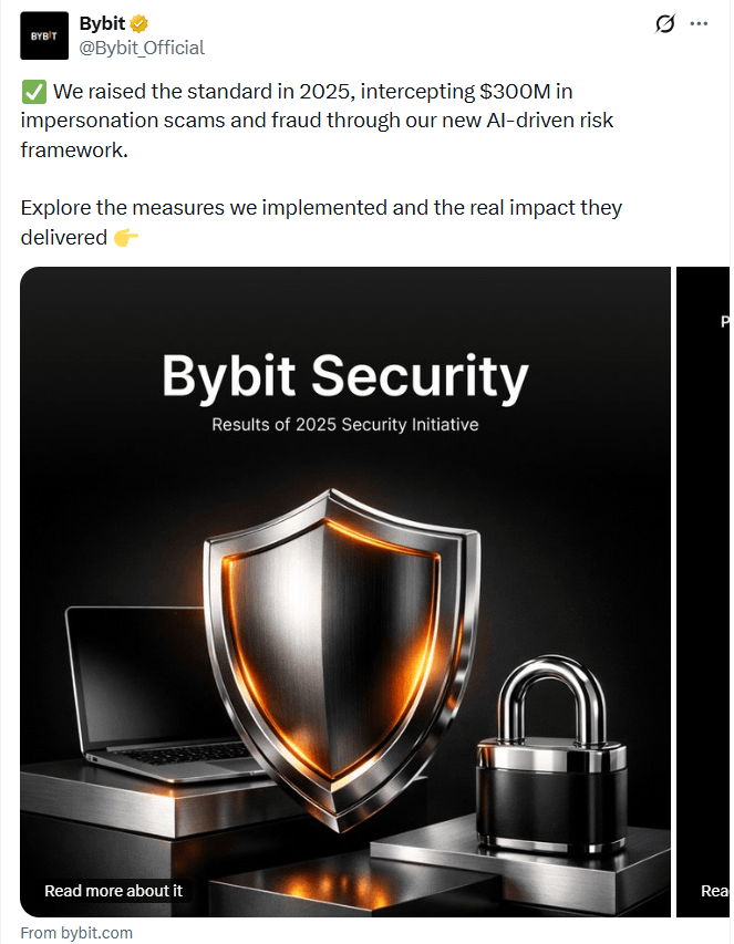 Bybit afferma che un nuovo sistema di frode ha fermato $300 milioni di prelievi rischiosi nel quarto trimestre del 2025