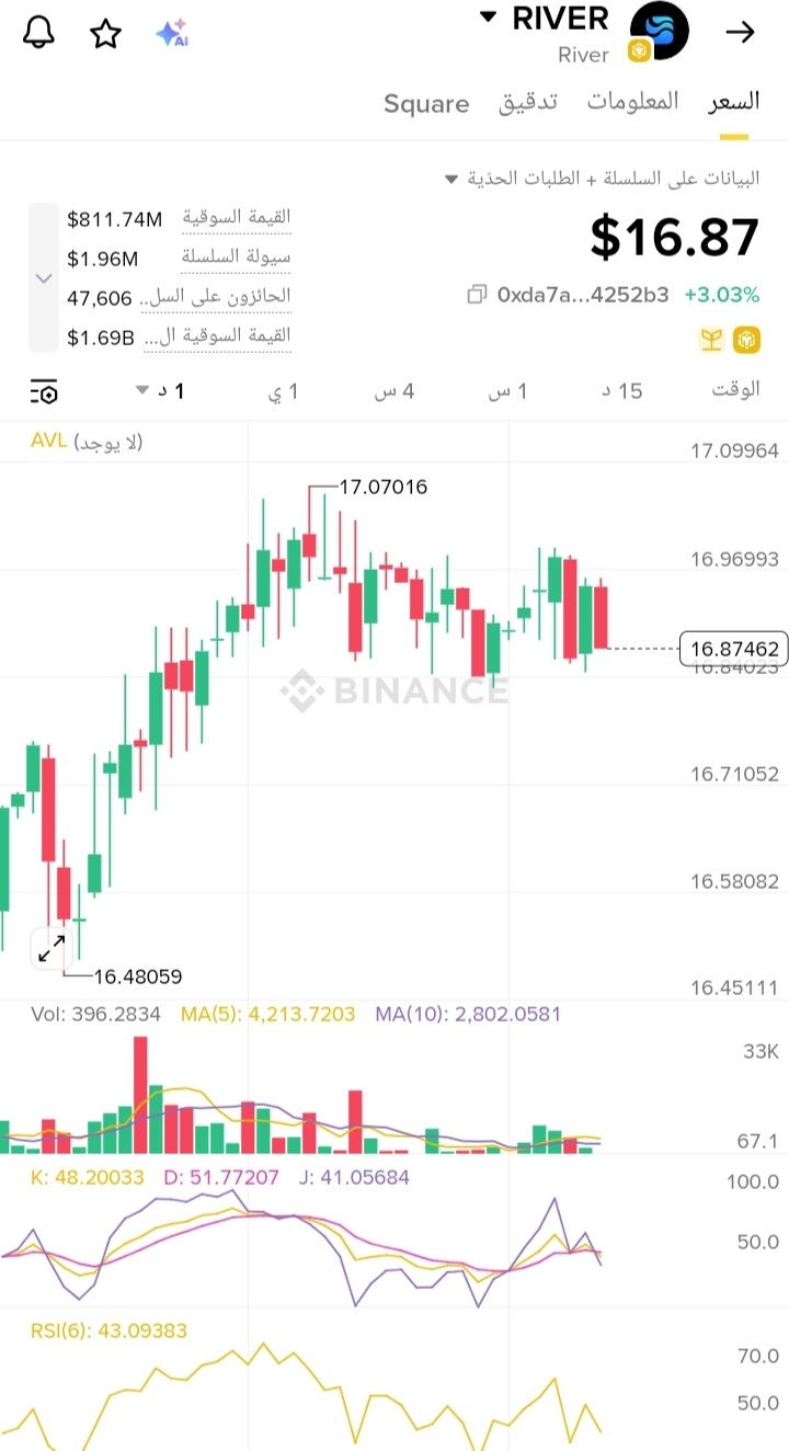 عملة River تعد من العملات التي بدأت تجذب اهتمام المضاربين بسبب تقلباتها السريعة وإمكانية تحقيق تحركات قوية خلال وقت قصير. وعلى المدى القصير قد تتجه نحو 18 – 20 دولار إذا استمر الزخم الحالي.