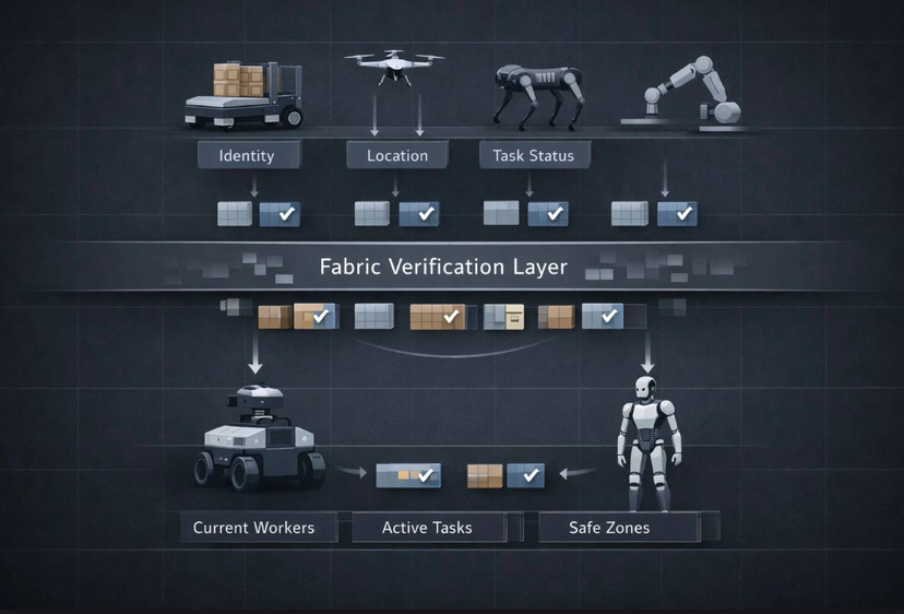 Invece di trasmettere solo dati grezzi dei sensori o segnali di controllo, i robot possono produrre rapporti leggibili che descrivono ciò che hanno osservato e come hanno preso le loro decisioni. Fabric verifica questi rapporti e li memorizza come informazioni affidabili a cui altre macchine possono accedere e utilizzare.