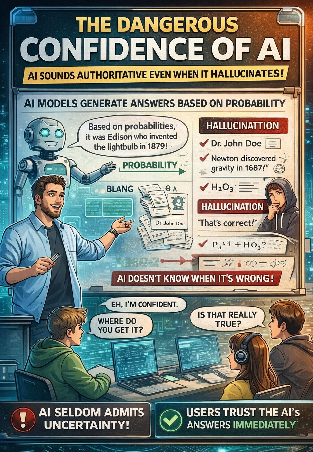 Unlike humans who might say “I’m not sure,” AI often fills the gap with something that sounds correct.