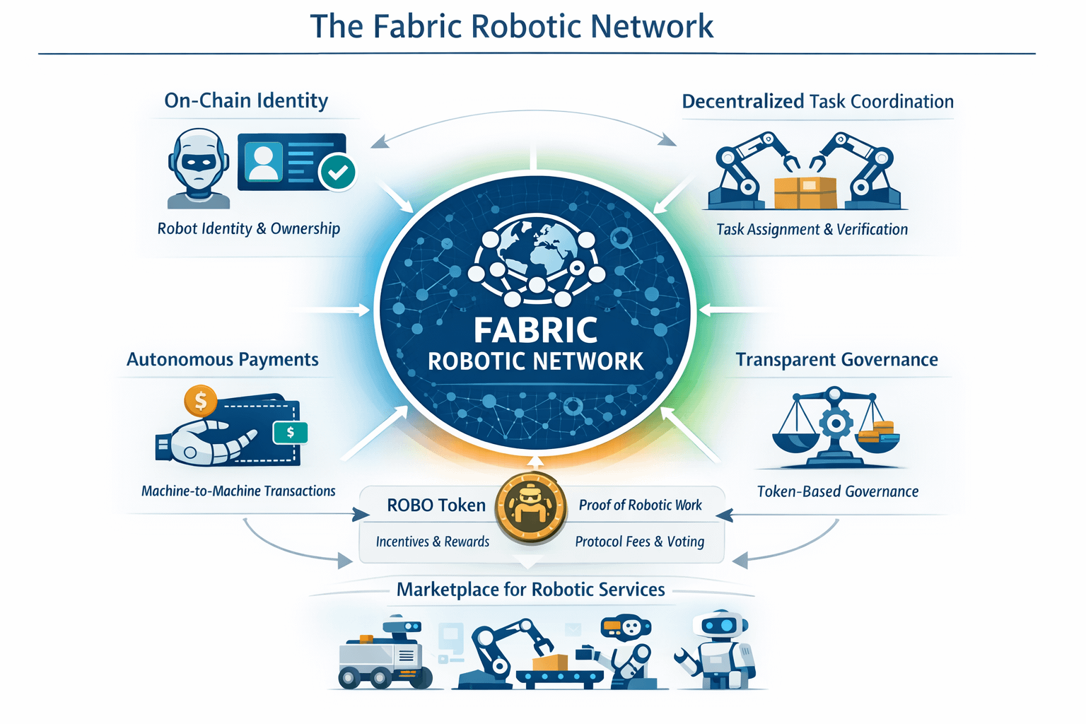 At its core, Fabric functions as a coordination layer for robotic systems. Through blockchain-based ledgers and smart contracts, the network provides key capabilities required for robots to operate as economic actors.