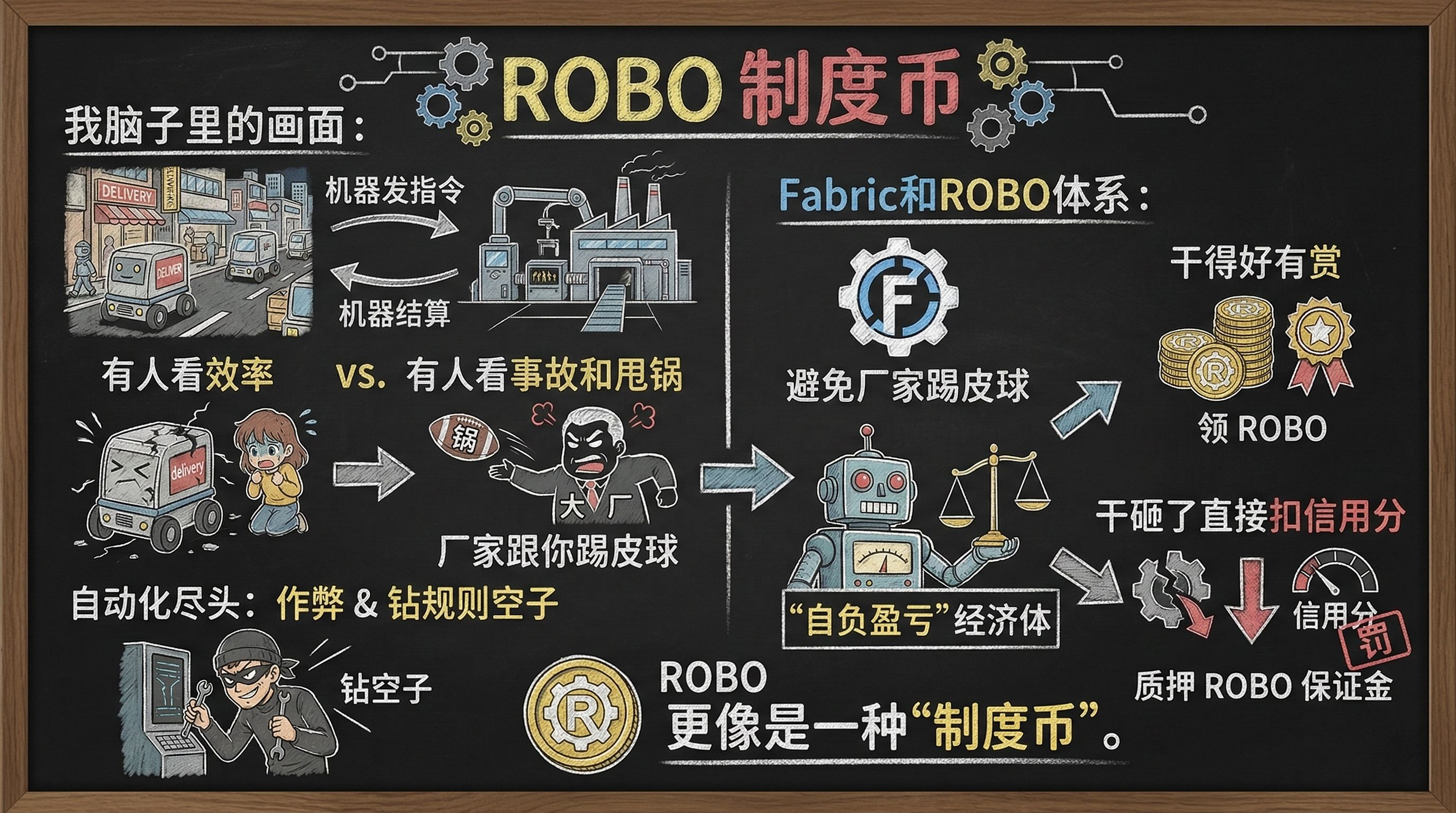 我现在对 @Fabric Foundation 和 #ROBO 的感觉,就是它太重、太慢、太较真。但也就是这种“不讨喜”,让我没法把它当成普通的热点币看待。它像是在提前处理一个大家现在还懒得面对的问题:当机器开始参与经济,秩序怎么写?