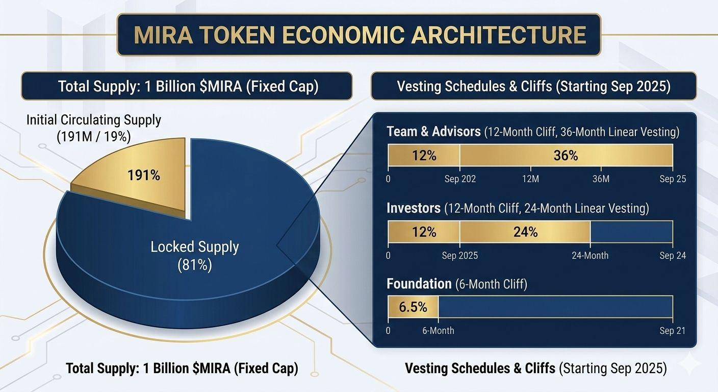 Let’s start with supply. Mira runs on a fixed supply of 1 billion tokens. No inflation tricks. No surprise emissions later. That cap matters because infrastructure tokens tend to live or die by their monetary design.