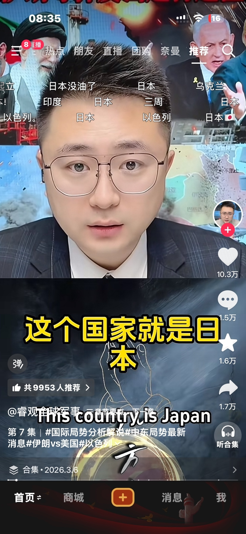 #1. 日本因95%原油依赖中东,且有40余艘船只被困波斯湾,能源生命线直接受中东局势威胁。