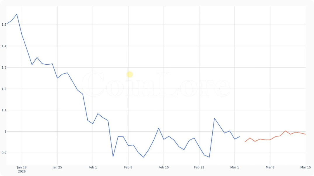 但之后就是漫长的熊市煎熬,然而对比现在0.97-0.98美元,市值7.42亿刀,排名65-82位。24h成交量8000-9000万刀,流通供应量约7.59亿FIL,总供应1.95亿。距离ATH已经跌了99.59%,2025年10月还探到0.63刀低点,今年到现在YTD跌超20%,1年跌幅也接近68%。