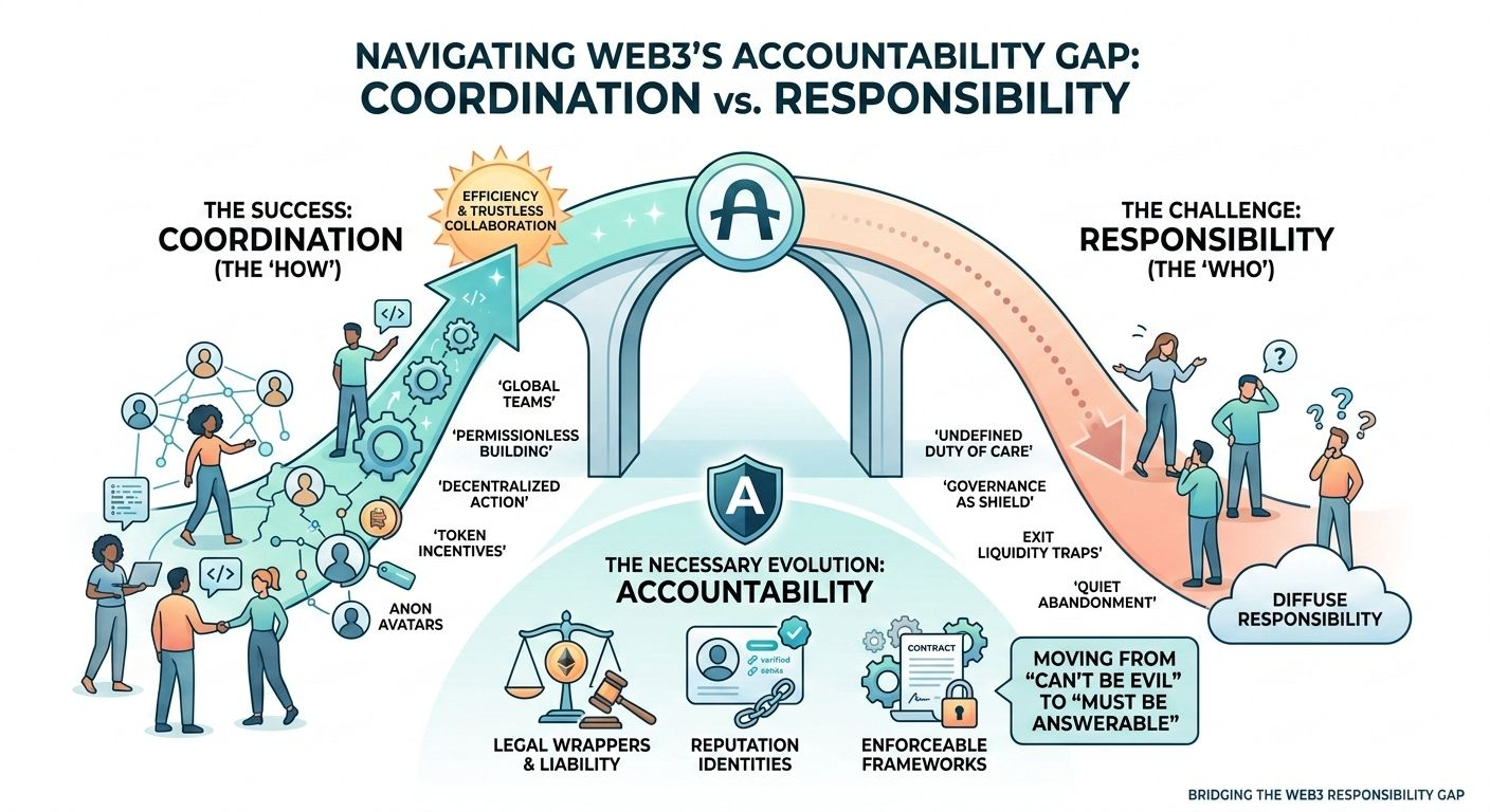 E quando cerchi di tracciare la responsabilità, la risposta di solito punta indietro alla governance o al consenso della comunità. Il che spesso significa che nessuno deve effettivamente rispondere per nulla.