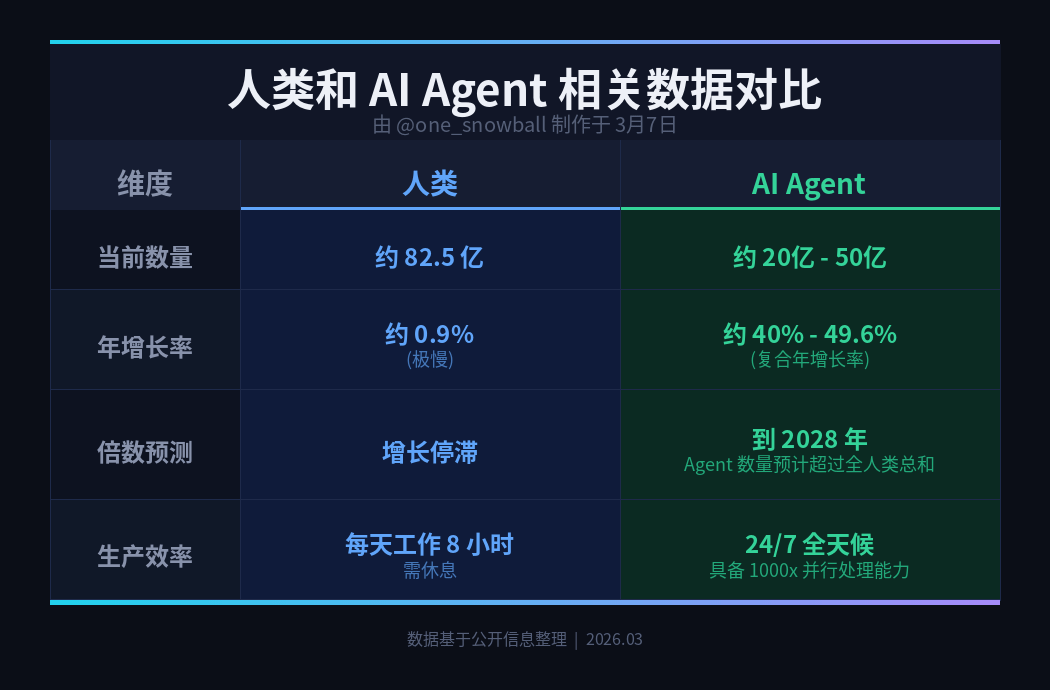 1️⃣先说说世界的发展吧,目前整个世界已经大概有20亿-50亿个AI Agent