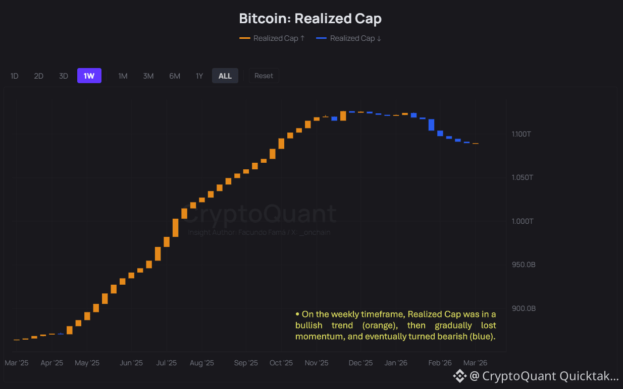 • Insight: On the weekly timeframe, Realized Cap was in a bullish trend (orange), then gradually lost momentum, and eventually turned bearish (blue).