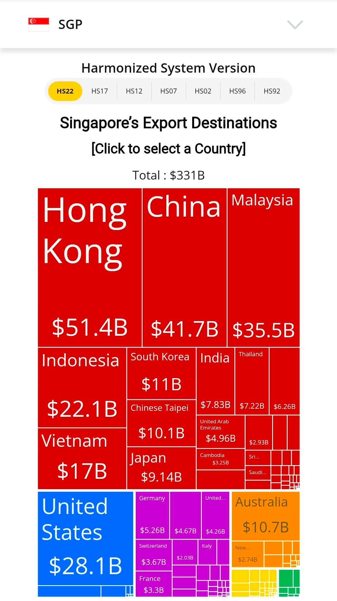 Singapore's total exports reached a substantial $331 billion, with its trade relationships heavily concentrated in Asia and key Western markets, according to recent trade data. The data, which can be viewed across various Harmonized System (HS) versions like HS22, highlights a clear hierarchy of export destinations.