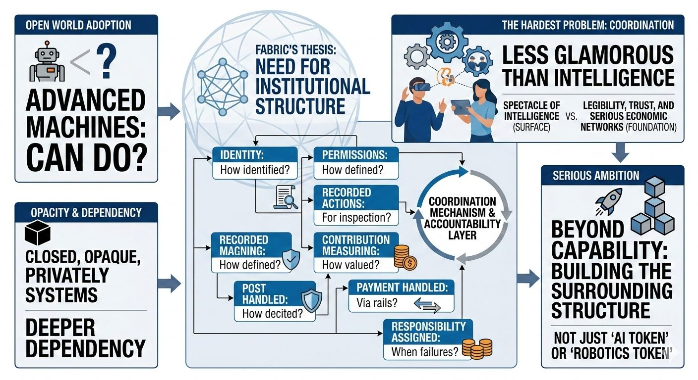 That is why Fabric feels important to me. It seems to understand that public trust in machine participation will not come from branding, and it will not come from raw intelligence alone. It has to come from structure.