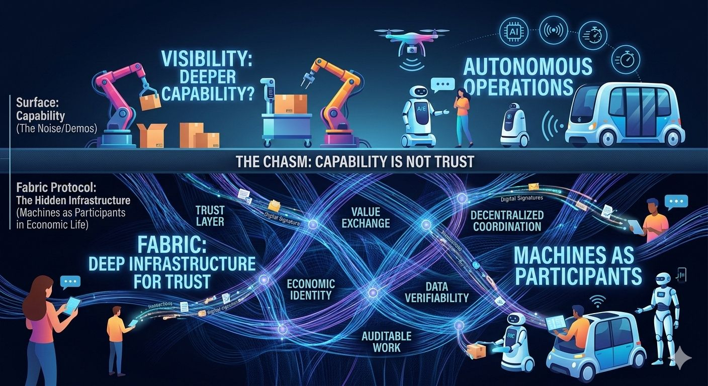 Fabric, at least to me, feels like it has found that layer. It is not just imagining intelligent machines. It is asking what kind of public structure must exist when those machines start doing real work in the world. It is trying to think beyond the machine as spectacle and toward the machine as participant. That shift may end up mattering far more than most people realize right now.