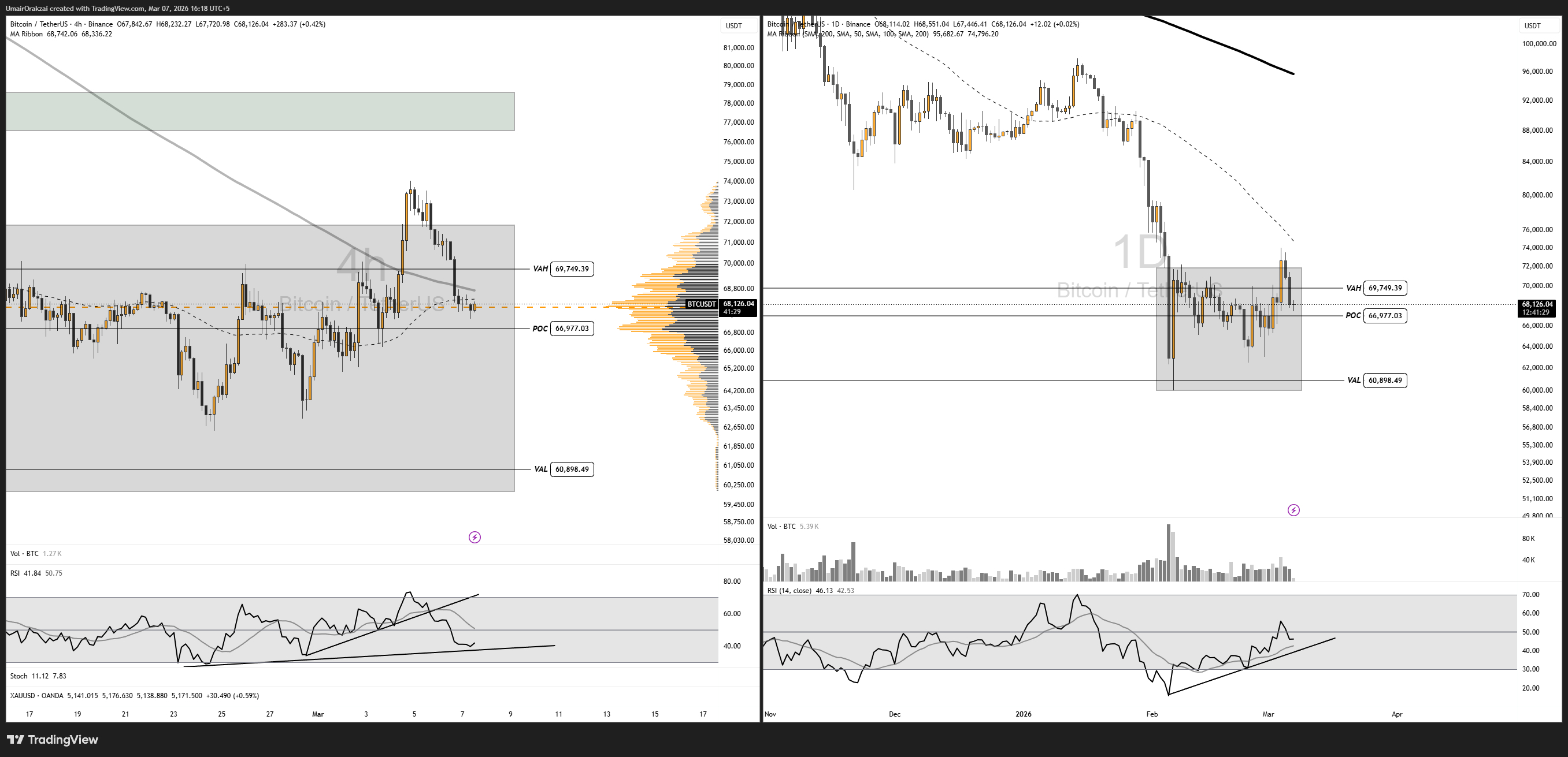 If the RSI trendline on the daily breaks, structure points toward $58,000 first, and $55,300 as the deeper target.