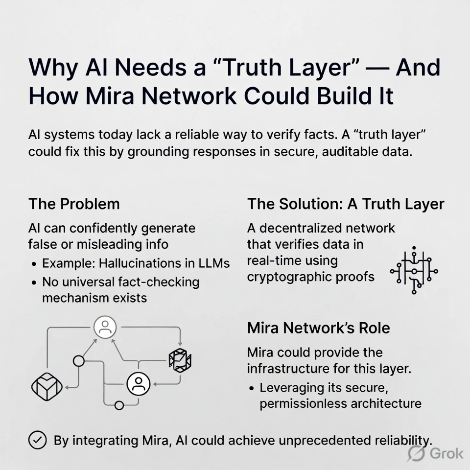 Think of it as a kind of backbone of fact checking running through the whole AI world. The way blockchains made financial records open and transparent, a truth layer could keep AI generated info actually grounded in reality.