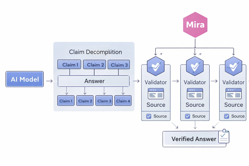 This is where a new idea begins to appear in AI infrastructure. Instead of trusting the full answer immediately the system can break the response into smaller pieces and check them individually. This is the direction networks like Mira are exploring.