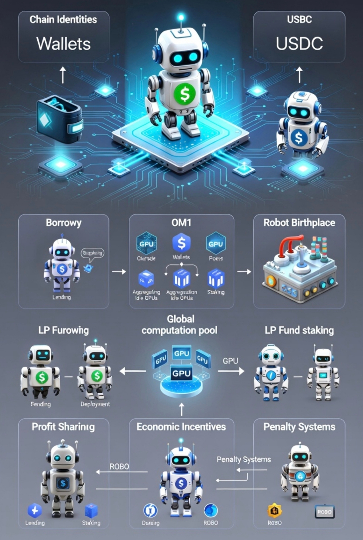 Fabric Foundation那帮从斯坦福和Google DeepMind出来的人,三年前就盯着这个痛点下手。他们不卷硬件参数,不吹AI模型,埋头干一件事:给机器装上"金融属性"。OM1操作系统让机器人有统一大脑,FABRIC协议给每台机器发链上身份和钱包,Circle的USDC整合进来让机器能自己支付。这套东西跑通之后,机器就不再是资产负债表上的固定资产,而是有收入账户、有信用记录、能参与经济活动的独立节点。
