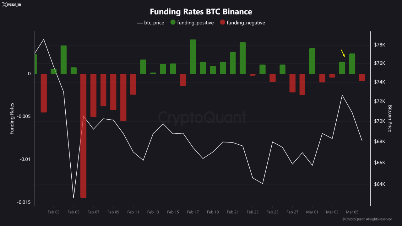 In questo contesto, i trader di Binance sono diventati leggermente euforici, aprendo posizioni long con il rischio di rimanere bloccati vicino al massimo. Parte di questa iniezione nell'Open Interest è stata chiusa nei giorni recenti con il Bitcoin che è sceso di nuovo sotto i $70k.