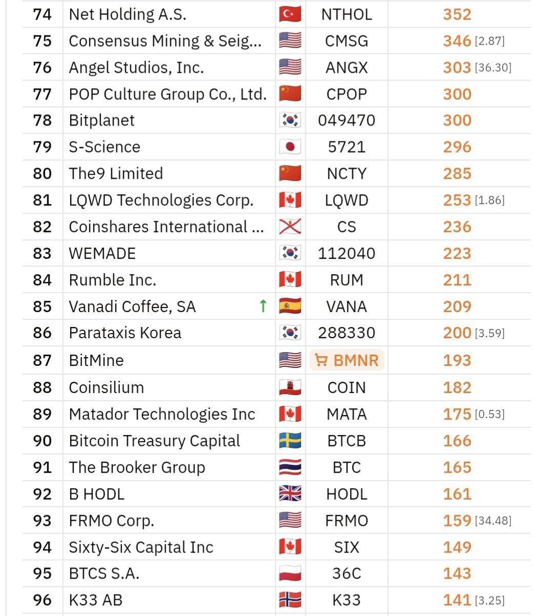 Quel punto di ranking conta più di quanto possa sembrare. I ranking del tesoro pubblico sono diventati un punteggio di convinzione. Ogni BTC aggiuntivo è ora interpretato dal mercato come un segnale: l'azienda sta accumulando, rimanendo ferma o retrocedendo? Nel caso di Vanadi, il messaggio è semplice. Sta ancora accumulando.