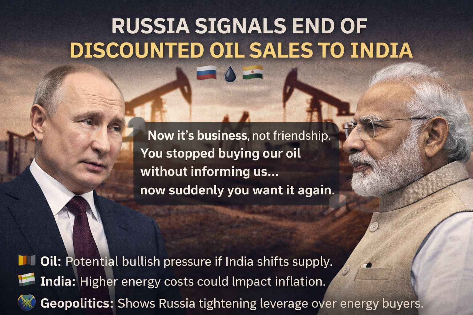 Recenti rapporti suggeriscono che Vladimir Putin ha inviato un forte messaggio riguardo al futuro commercio energetico con l'India, indicando che le transazioni di petrolio potrebbero ora essere trattate rigorosamente come affari commerciali piuttosto che come partnership strategiche.