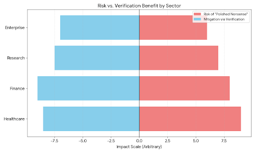In healthcare, that kind of verification could matter because summaries and recommendations should not slide through just because they sound professional. In finance, it matters because one flawed interpretation can ripple outward very quickly. In research, it matters because fabricated citations and cleanly worded falsehoods can pass too easily when nobody checks the original material. In enterprise tools, it matters because teams increasingly trust outputs they barely inspect if the workflow feels smooth enough.