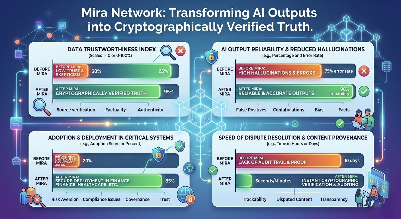 Mira Network introduces a decentralized verification protocol designed to bring reliability and transparency to artificial intelligence systems. In the current AI landscape, models frequently produce outputs that sound confident but may contain factual errors, hallucinations, or bias. While these issues might be manageable in casual applications, they become serious risks when AI is used in financial systems, autonomous software agents, governance decisions, or other high-stakes environments. What makes Mira Network particularly interesting is that it does not attempt to replace AI models. Instead, it focuses on verifying them.