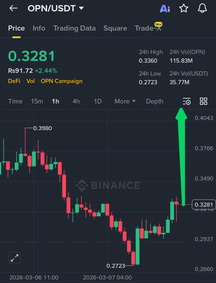 Fresh buying demand and campaign momentum have supported a short‑term recovery. If $OPN holds above 0.320 USDT, upside targets lie at 0.36 – 0.40 USDT, with speculative traders eyeing 0.404 USDT as the next resistance.