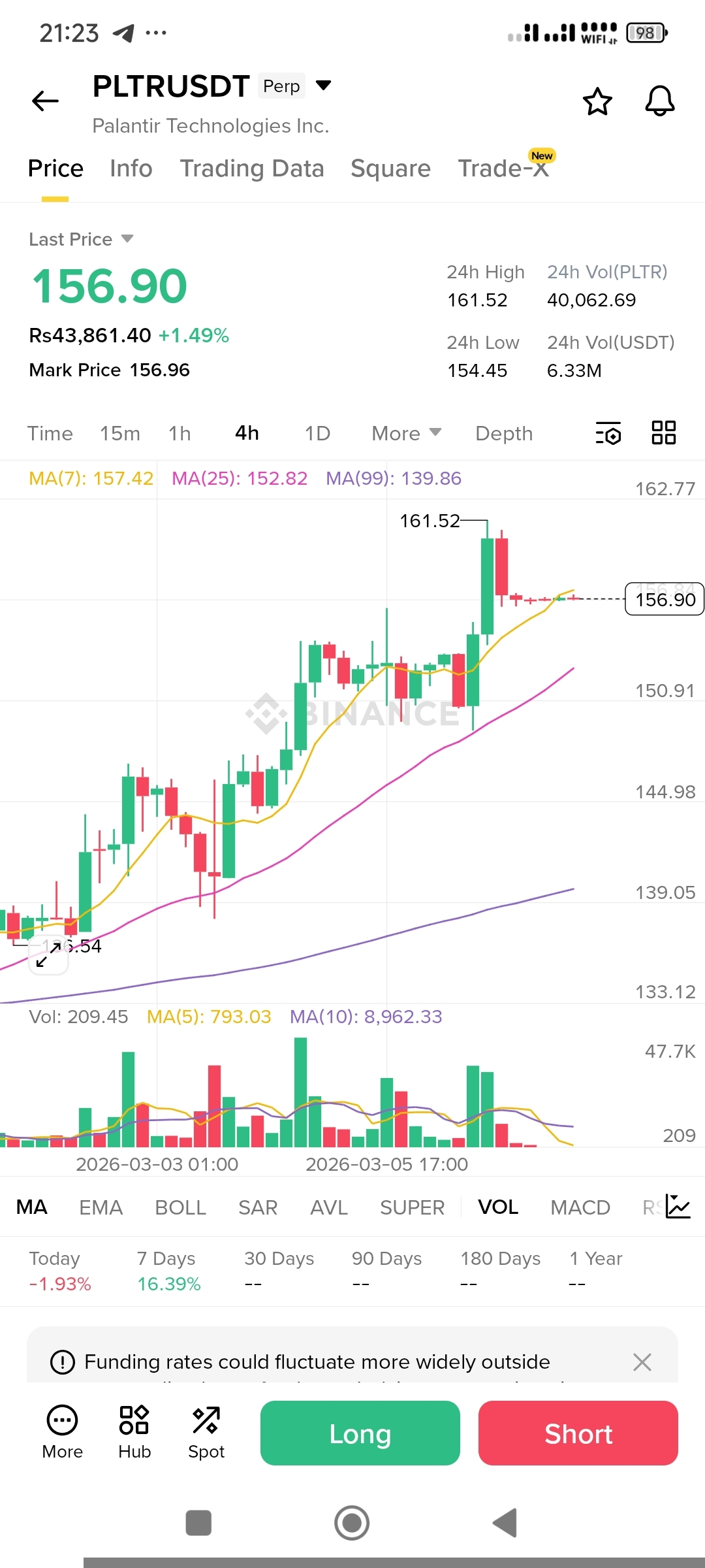 The Palantir Technologies Inc. perpetual pair (PLTRUSDT) is currently showing strong bullish structure on the 4H timeframe, signaling that buyers are still controlling the trend despite a short consolidation phase.