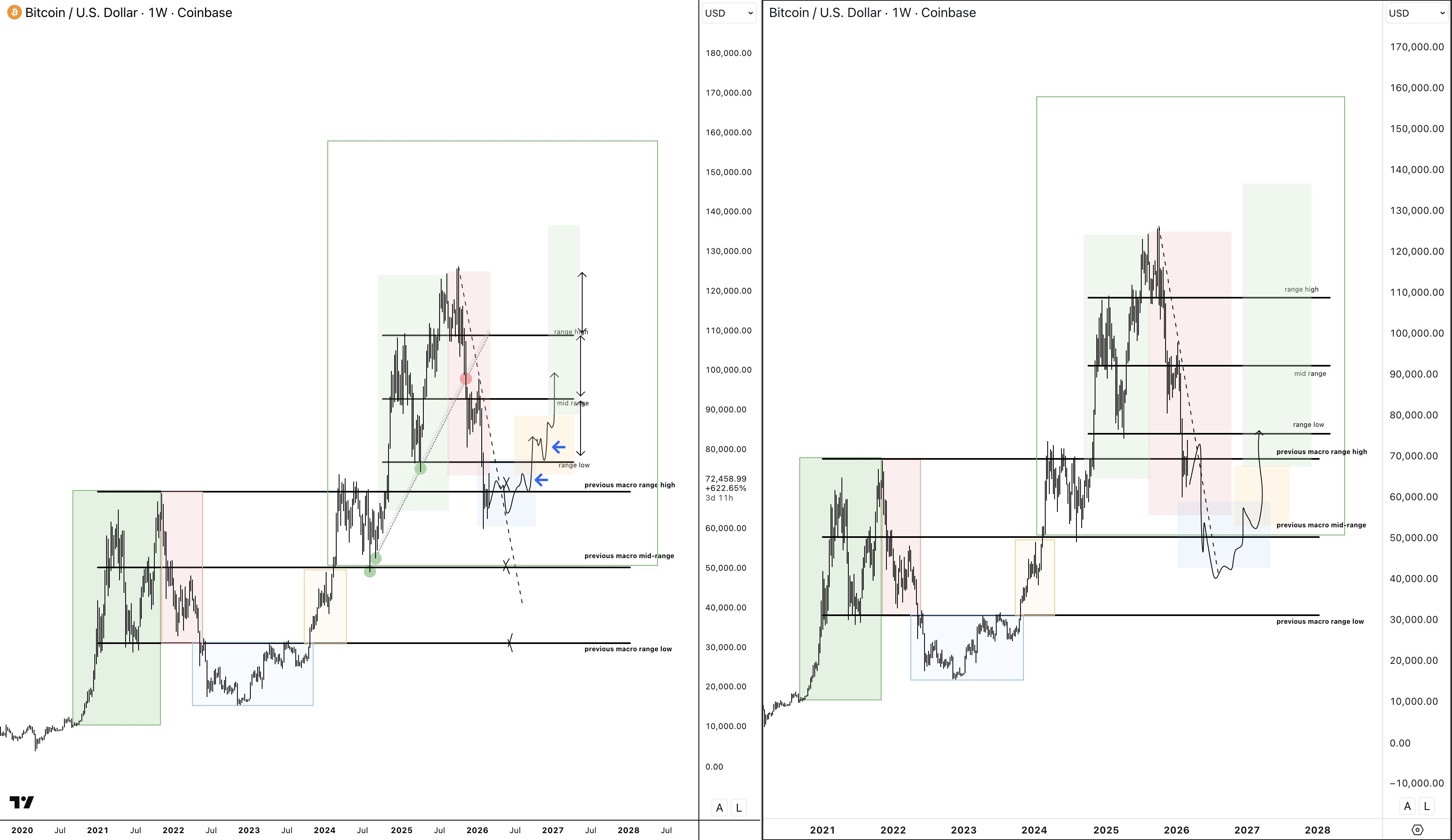 L'inclinazione è che dopo che questo mini-ciclo si risolve, Bitcoin continua nella struttura del ciclo macro nella parte più parabolica.