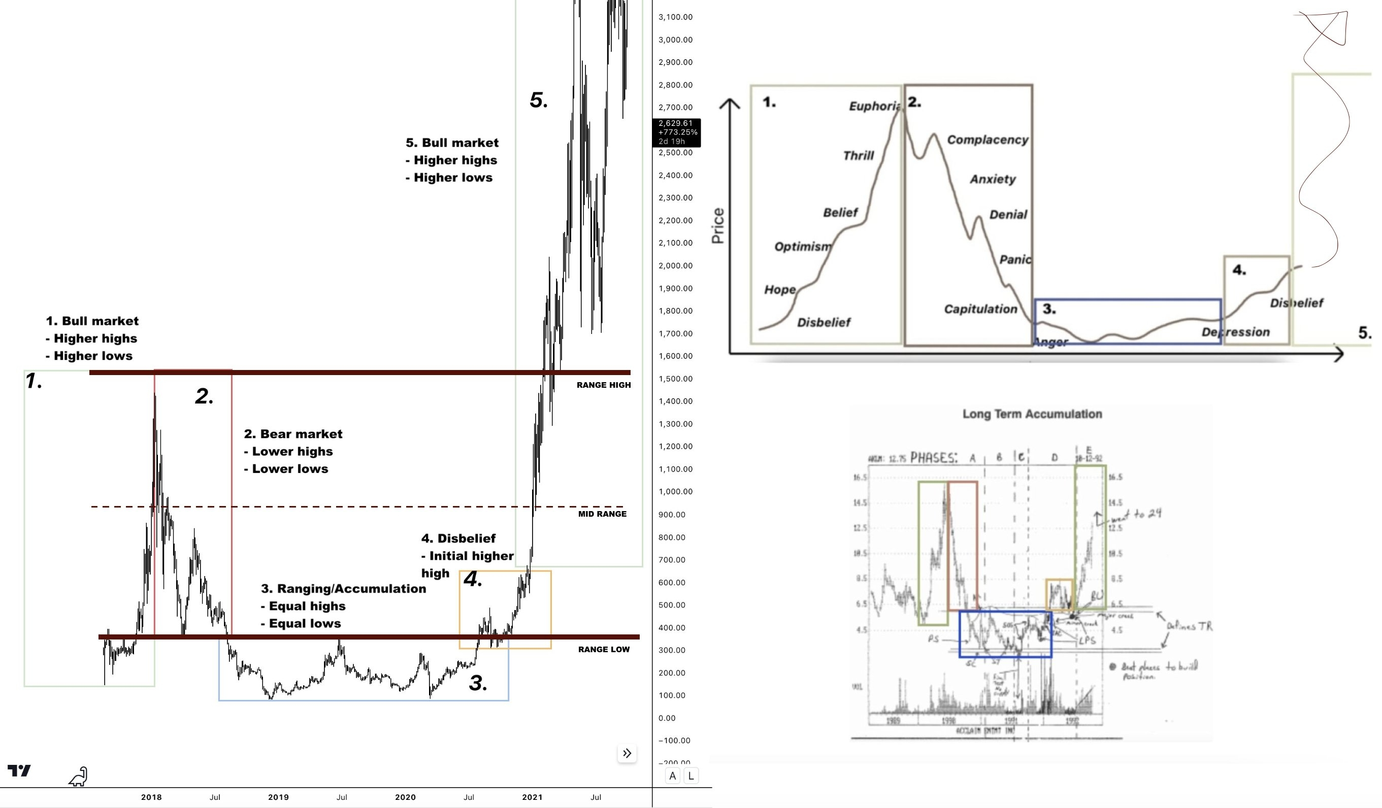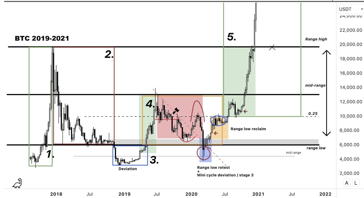 Ma i breakout eventuali della fase 3 del mini ciclo sono avvenuti a un livello chiave (le zone dei minimi del range qui), e il mini ciclo si è svolto e è tornato nel ciclo macro e nella sua fase parabolica.