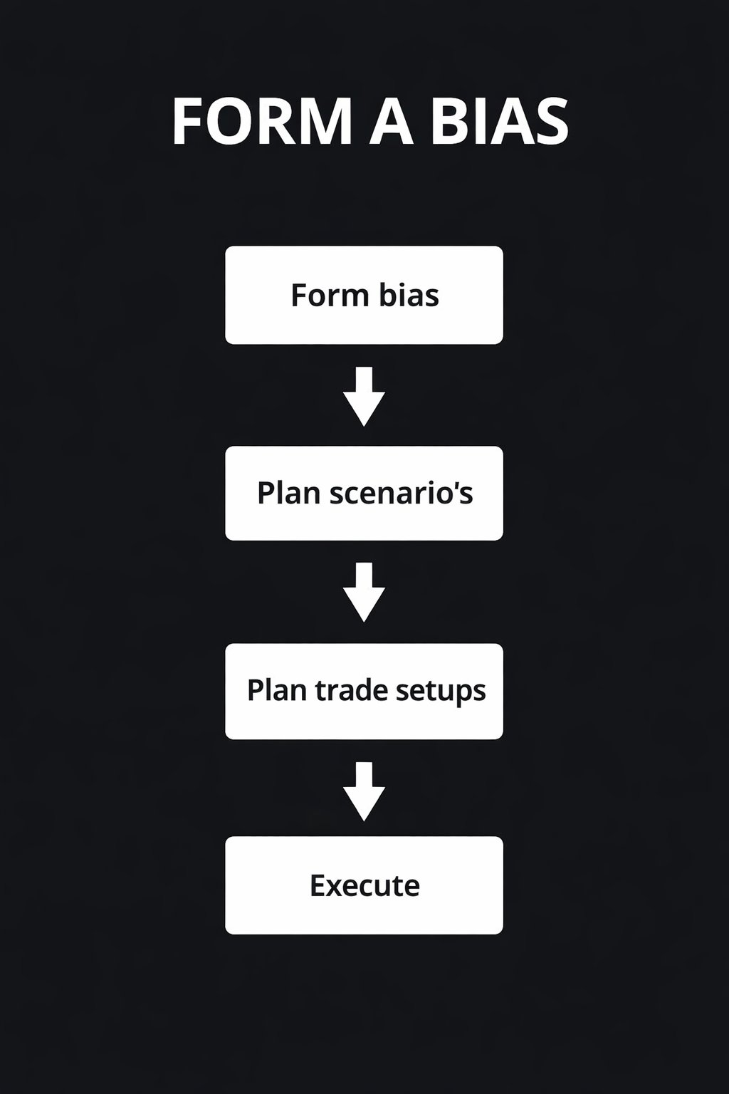 Se hai abbastanza motivi per pensare che la probabilità di una certa direzione sia abbastanza buona, puoi decidere di scommettere su quel bias. Puoi iniziare a pensare e pianificare il tuo ingresso e la tua invalidazione.