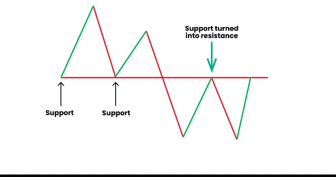 🔸️Support → Resistance: Price breaks below a support level and then uses it as a new ceiling.