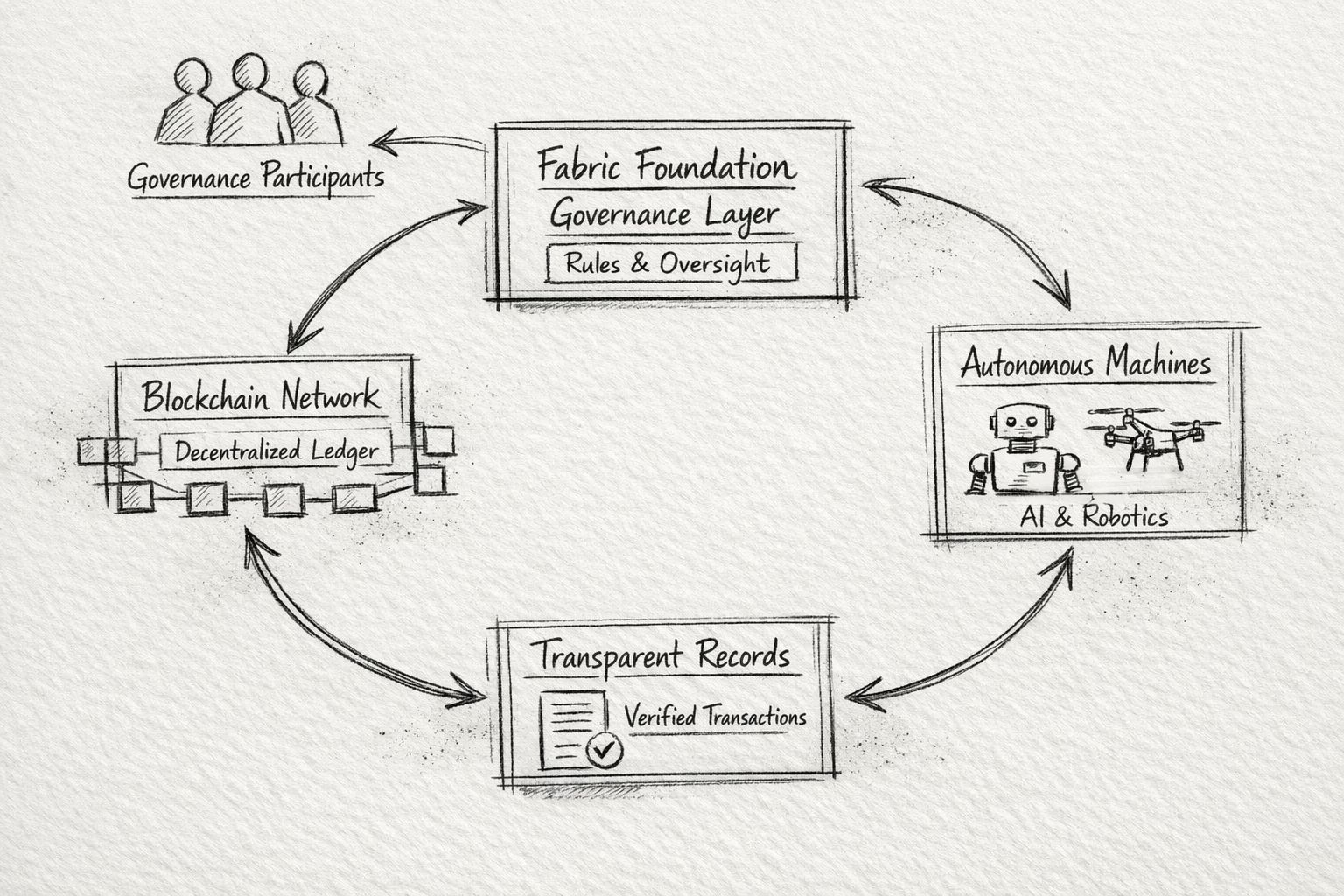 These structures are similar to how traditional institutions work. They are implemented using decentralized infrastructure. In words the Fabric Foundation sees blockchain as a way to coordinate between institutions rather than replacing them.