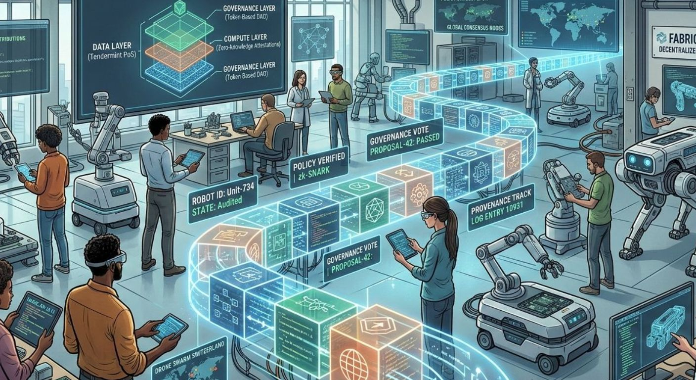 The whitepaper spells it out, and a 2023 feature in IEEE Robotics and Automation Magazine drives the point home. The Fabric Protocol is all about a permissionless ledger. It keeps track of where data comes from, verifies it, enforces rules basically, it lets humans interact with robots whose decisions you can actually check in real time. Updates run through decentralized governance, so open source creativity stays protected. There’s even a token system that rewards transparency and punishes bad actors. The whole design borrows from blockchain economics but tweaks it for the high-stakes world of autonomous machines. Technically, it’s a three-layer stack: a data layer using proof-of-stake Tendermint for lightning-fast, unchangeable records; a compute layer that generates zk-SNARKs to prove robots are following the rules; and a governance layer with token-based voting, inspired by Buterin’s DAO model, all tied together by an API that hides the cryptography so developers can focus on building.